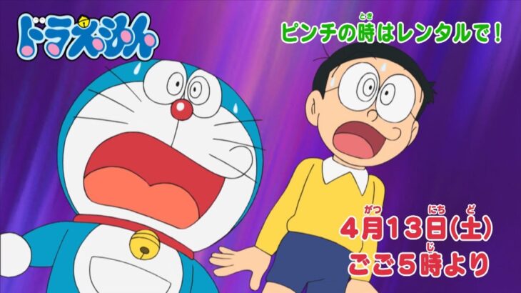 毎週土曜日ごご5:00~テレビ朝日系列にて放送 テレビアニメ『ドラえもん』 2024年4月13日(土)ごご5時からは 『ピンチの時はレンタルで!』『動物変身恩返しグスリ』 ■番組ホームページ(PC・スマートフォン) ©藤